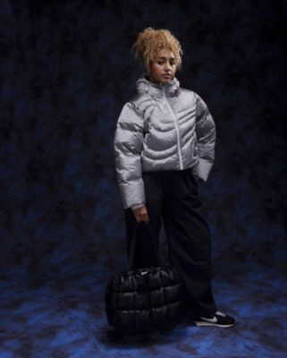 Produktinformationen Großes Hauptfach mit zwei Knebelverschlüssen Reißverschlusstasche innen für kleine Gegenstände Kordelzug mit Schnurbremse und Swoosh-Branding